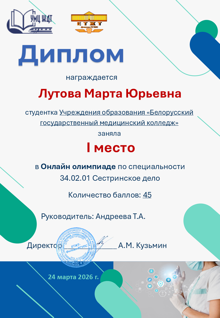 Учащиеся БГМК среди победителей онлайн-олимпиады по специальности «Сестринское дело»