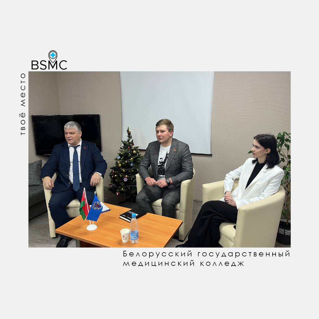 Участие в встрече приняли директор колледжа Юрий Круглик, председатель Молодежного общественного обьединения «Движение вперед» Рачиловский Никита и его заместитель Тарлецкая Карина.